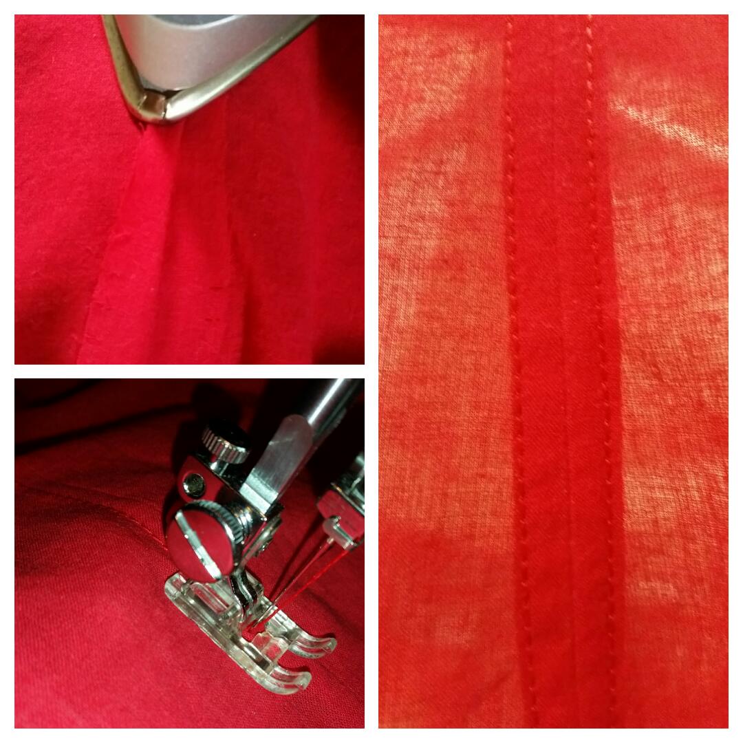 There's not much to constructing the top itself. This first version is made from a very soft red cotton voile. The shoulders and side seams are sewn with French Seams. I made self-fabric 3/4 inch single fold bias tape to finish the neck, armholes and hem, all of which were sewn with 3/8 seam allowance, rather than the pattern-directed 5/8, then top stitched at 1/4 inch. I did manage to slice into my binding at the hem while grading the seams. A little fray check and it seems to be fine.